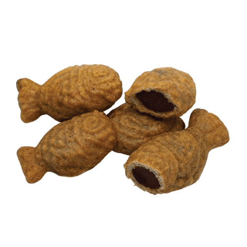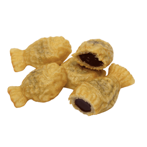 (4 st.) Gebakken Japanse wafels in de vorm van een vis, gevuld met warme gesmolten chocolade