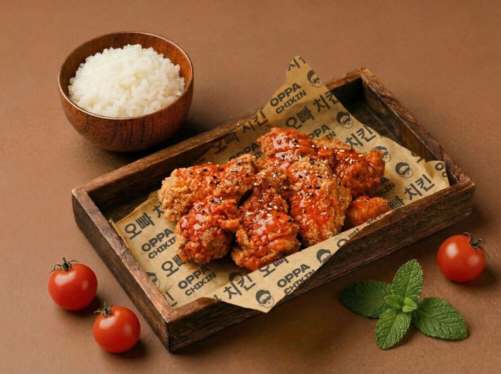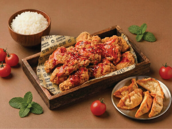 (12-16 st.) Stel jouw perfecte Oppa Chikin Box samen met twee bijgerechten naar keuze.